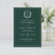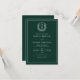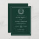 Invitation Emerald Green Leafy Crest Monogramme Mariage éléga