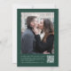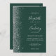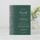 Le bord gauche de cette élégante faire-part de mariage moderne présente un style de parties scintillant en faux argent. Le texte personnalisable combine écriture gris argenté, copperplate et polices italiques sur un arrière - plan vert émeraude foncé. Ajoutez votre photo préférée à l'envers, ainsi qu'un texte supplémentaire et un code QR pour envoyer les invités à votre site mariage.