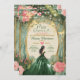 Emerald Green Robe Or Floral Forest Mis Quince Invitation Quinceanera 15 Anos, 16e Anniversaire Papillon d'or