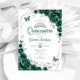 Émeraude verte, argent et blanc Quinceanera invitation de célébration. Caractéristiques, police de script, papillons, roses vert aquarelle et tiara. Parfait pour une élégante célébration de glamour de style princesse. Personnalisez avec vos propres détails. Invitations Zazzle imprimées ou téléchargement instantané modèle imprimable numérique.