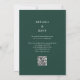 Invitation Emerald Green Simple Monogramme QR Code Mariage