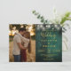 Ce faire-part de mariage vert émeraude à cordes de bois de grange rustique peut être personnalisé avec vos informations dans la typographie dorée moderne et une photo spéciale. Conçu par Thisisnotme©