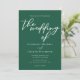 Ce faire-part de mariage vert émeraude massif présente un script blanc classique pour un couple se marier dans une forêt ou un autre lieu naturel. Célébrez votre amour avec cette couleur tranquille et coordonnez avec notre collection de typographie minimaliste correspondante.