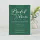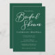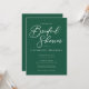 Cette solide invitation à la douche nuptiale vert émeraude présente un script blanc classique pour une mariée se marier dans une forêt ou un autre lieu naturel. Célébrez votre amour avec cette couleur tranquille et coordonnez avec notre collection de typographie minimaliste correspondante.