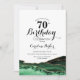 Émeraude vert, blanc et or agate 70e anniversaire invitation de fête. Design élégant et moderne avec aquarelle agate marbre arrière - plan, fausse parties scintillant or et typographie script de police. Carte invitation branchée parfaite pour une célébration anniversaire féminine élégante. Invitations Zazzle imprimées ou téléchargement instantané modèle imprimable numérique.