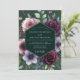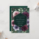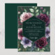 Embrace a dramatic and romantic atmosphere with this elegant design. A stunning arrangement of plum roses, mauve anemones, and deep purple blossoms is set against a dark emerald backdrop. Lush greenery and delicate berries complete this opulent botanical composition for a truly moody and sophisticated union.