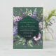 Embrace a botanical romance with this elegant design. Sprays of delicate purple lavender and soft anemones bloom against a rich, emerald green backdrop. Lush green foliage weaves throughout the arrangement, creating a moody and enchanting atmosphere perfect for a sophisticated union.