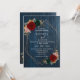 Le design est composé d'un arrière - plan en bois bleu marine avec un cadre géométrique en or avec des fleurs bordeaux, vert émeraude et des feuilles d'eucalyptus dorés. Personnalisez avec vos détails de mariage et s'il vous plaît trouver des designs correspondants de mon magasin "DreamHut".
