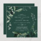 Ce faire-part de mariage carré vert émeraude est parfait pour un mariage boho. Le design élégant et rustique présente des feuilles d'aquarelle vert foncé moody et des eucalyptus aux tons bohèmes modernes.