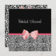 Une invitation branchée à la douche nuptiale empreinte de léopard en noir et blanc avec un joli ruban rose enveloppé comme un cadeau. Personnalisez pour invitation vos invités à assister.