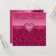 Les invitations roses faites sur commande élégantes de Fête de la mariée un motif animal de fourrure avec d'un beaux roses indien et léopard/guépard vibrants lumineux de noir et les diamants roses mignons jewels les coeurs et le ruban assez rose. Ces invitations fascinants chics sont décorés les deux côtés. Invitations Girly, chics, à la mode, modernes. Notez svp : Tous les invitations sur Zazzle ont des images imprimées d'appartement. Le texte, la police et la couleur de la police sont tous personnalisables. Si vous avez besoin d'aide customisant votre produit svp contactez-moi par mon magasin. Je serai heureux d'aider.