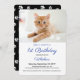 Célébrez l'anniversaire de votre animal de compagnie grâce à ces invitations à fêtes à motifs empreintes de pattes et noirs. Utilisez les modèles fournis pour les personnaliser avec la photo, l'âge, le nom et les détails de votre fête. Vous pouvez également changer les empreintes de pattes blancs sur le devant, les couleurs de texte rose et/ou noir à vos favoris.