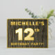 The front of this bold twelfth birthday celebration foil invitation card features a custom name, a large number “12th”, the message “BIRTHDAY PARTY!”, and a border, all in foil. There is a rustic, yet elegant, faux wood grain look inspired pattern for the background of the front. The back features personalized details about the event, such as the date, time, venue/place, and any other important information. Customizable invitations like these might be used to invite attendees to a birthday gathering being held to celebrate somebody’s 12th birthday. [~Z0000598]