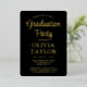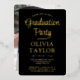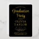 Partagez la joie d'un baccalauréat ou d'un collège et la famille et les amis invitations à célébrer avec des invitations élégantes photo personnalisées en noir et or feuille d'or. L'image et le libellé sont simples à personnaliser. Ce modèle est formaté pour une fête de remise de diplômes, mais peut facilement être changé en une journée portes ouvertes ou autre occasion. Le design moderne minimaliste noir et or comprend de la vraie feuille métallique, de la calligraphie de script de style simple manuscrit, une typographie élégante et une photo de votre choix, comme une image principale ou une image de la cérémonie de début. Cette invitation chic à la remise des diplômes est une façon élégante de commencer une fête spéciale. Félicitations au diplômé !