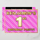 La façade de cette joyeuse carte d'invitation pour fêtes et fêtes d'anniversaire comporte un nom personnalisé, un grand numéro "1er", le message "FÊTE D'ANNIVERSAIRE !", et une frontière. L'arrière - plan de l'avant a un motif à rayures rose clair et rose foncé, optimiste, aux formes cardiaques. Le verso présente des détails personnalisés sur l'événement, tels que la date, l'heure, le lieu et toute autre information pertinente. Des invitations customisées comme celles-ci pourraient être une façon amusante pour les invités/participants invitations à une fête d’anniversaire organisée pour célébrer le 1er anniversaire de quelqu’un. [~Z0000603]