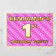 Invitation En Aluminium 1ère fête d'anniversaire — Coeurs et rayures roses