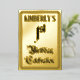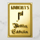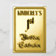 La façade de cette fêteuse fêtesse/feuille de fête d'anniversaire, invitation/conception de faire-part présente le message "1er anniversaire de célébration" dans un texte opulent de style script. Il a également un nom personnalisé. Le verso présente des détails personnalisés sur l'événement, tels que la date, l'heure, l'emplacement et toute autre information utile. Des invitations aussi opulentes, luxueuses et modifiables pourraient être utilisées pour les invités invitations à une fête d’anniversaire qui se tient pour célébrer le 1er anniversaire de quelqu’un. [~Z0000596]