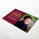 Annoncez votre classe de 2023 diplômé de l'école secondaire en style avec cette véritable faire-part de remise de diplômes et invitation de fête. La carte recto verso présente un design simple et masculin avec des lettres d'inspiration jersey sport, parfait pour votre élève étoilé et athlète de variété. rouge bordeaux, feuille d'or et blanc. Espace pour inclure une photo principale sur le devant avec le libellé de l'invitation de la fête à l'arrière.