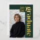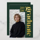 Make a bold, modern statement with this editorial-style photo graduation announcement featuring real gold foil typography and a classic forest green palette. This customizable template allows you to personalize the final two digits of the class year, graduate’s name and school, and upload two photos for a clean, magazine-inspired layout. Adjustable letter spacing lets you fully justify the name and school text for a tailored, high-end look. Designed for seniors who want a timeless yet fashion-forward announcement with crisp accents and genuine gold foil detailing. © Kimbellished, LLC