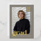 Celebrate a major milestone with this modern, editorial-style graduation announcement designed for a refined, masculine look. Featuring a stone gray background, soft cream typography, and real gold foil accents, this double-sided graduation card delivers a timeless yet fashion-forward presentation. The template allows you to personalize the class year, graduate’s name, and school on the front with your main photo, while the back includes space for a custom message and a 3-photo collage. Designed for graduates who want a clean, confident announcement with premium foil detailing and modern typography. © Kimbellished, LLC