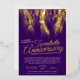 Tropical palm fronde feuille d'or sur hollywood violet glamour style affaires invitation événement anniversaire. Magnifique invitation idéal pour une prochaine plage tropicale ou entreprise de glamour subtropical 20 ans anniversaire d'affaires. Personnalisez avec vos propres détails d'événement. © L'aquarelle originale convertie en plaque d'aluminium et design par Sarah Trett pour www.mylittleeden.com sur zazzle.