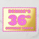 La façade de cette amusante et audacieuse carte d'invitation/faire-part de fête de trente-sixième anniversaire comporte un nom personnalisé, un grand numéro "36e", le message "FÊTE D'ANNIVERSAIRE !", et une bordure, toutes avec un motif rayé rose clair et rose foncé féminin. Le verso présente des détails personnalisés sur l'événement, tels que la date, l'heure, le lieu/lieu et toute autre information importante. Des invitations modifiables comme celles-ci pourraient être utilisées pour les invités ou les participants invitations à une réunion d’anniversaire qui se tient pour célébrer le 36e anniversaire de quelqu’un. [~Z0000597]