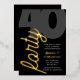 40e anniversaire Invitation avec feuille d'or de luxe. Invitation spectaculaire mais simple avec "quarante" écrit en feuille d'or, un nombre surdimensionné 40 et facile à modifier modèle de libellé d'invitation. Design de typographie chic classe et audacieux mais sobre et minimaliste invitation de fête de 40e anniversaire pour adulte mâle ou femelle.