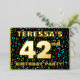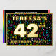 La façade de cette carte d'invitation amusante et optimisée de quarante-deuxième anniversaire/fête comporte un nom modifiable, un grand numéro "42e", le message "FÊTE D'ANNIVERSAIRE !", et une frontière. L'arrière - plan du devant présente un motif coloré et excitant de notes de musique et de symboles. Le verso présente des détails personnalisés sur l'événement, tels que la date, l'heure, l'emplacement et toute autre information pertinente. Des invitations personnalisables comme celles-ci pourraient être une façon amusante pour les invités invitations à une fête d’anniversaire organisée pour célébrer le 42e anniversaire de quelqu’un. Cela pourrait être plus significatif si cette personne est un chanteur, un compositeur, un musicien, ou qu'elle aime la musique. [~Z0000601]