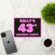 La face avant de cette carte d'invitation audacieuse et amusante de fête de quarante-troisième anniversaire comporte un nom modifiable, un grand numéro "43e", le message "FÊTE D'ANNIVERSAIRE !", et une bordure, toutes avec un motif féminin rose foncé et rose clair. Le verso présente des détails personnalisés sur l'événement, tels que la date, l'heure, le lieu/lieu et toute autre information utile. Des invitations customisées comme celles-ci pourraient être utilisées pour les participants invitations à une fête d’anniversaire qui se tient pour célébrer le 43e anniversaire de quelqu’un. [~Z0000597]