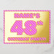 La façade de cette carte de faire-part audacieuse et amusante pour fêter quarante-huitième anniversaire comporte un nom personnalisé, un grand numéro "48e", le message "FÊTE D'ANNIVERSAIRE !", et une bordure, toutes avec un motif girly rose foncé et lignes rose clair. Le verso présente des détails personnalisés sur l'événement, tels que la date, l'heure, le lieu et toute autre information pertinente. Des invitations customisées comme celles-ci pourraient être utilisées pour les participants invitations ou les invités à un rassemblement d’anniversaire organisé pour honorer le 48e anniversaire de quelqu’un. [~Z0000597]
