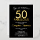Invitation En Aluminium 50 and Fabulous Modern Black Gold 50th Birthday