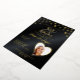 Créez une élégante invitation de 50ème anniversaire en noir et or avec une photo en forme de coeur (veuillez utiliser le modèle pour télécharger votre photo avant de commander). Le modèle texte permet de customiser facilement les invitations avec vos données, telles que le nom d'une dame d'anniversaire, la date de l'événement, l'adresse du lieu et les données RSVP. Vous pouvez également passer le jalon à 30, 40, 60, etc. La véritable feuille d'or est sur le côté avant de la carte. L'arrière - plan noir imite la surface métallique.