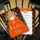 Rejoignez-nous pour un temps de rugissement avec cette fabuleuse et élégante invitation Art Déco Cinquante Anniversaire. Ce design saisit parfaitement le glamour des années 1920 et de l'époque du Grand Gatsby. Doté d'un motif de ventilateur géométrique audacieux en noir et or, placé contre des blocs de couleur orange vif (mandarine). C'est le choix idéal pour une soirée sophistiquée et mémorable sur le thème des fêtards ou des Années folles de 50, un déjeuner ou une fête de fiançailles. Le style Art Nouveau et Art Déco vintage est une touche de style sur un invitation traditionnel.
