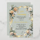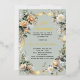 Un arrière - plan vert sage. Décoré de fleurs blanches et jaunes et d'un ruban doré. Personnalisez et ajoutez un nom et des détails.