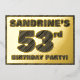 La façade de cette carte d'invitation audacieuse à fêtes de cinquante-troisième anniversaire comporte un nom personnalisable, un grand numéro "53e", le message "FÊTE D'ANNIVERSAIRE !", et une bordure, toutes avec un motif rustique, mais élégant, à la fausse grain de bois inspiré. Le verso présente des détails personnalisés sur l'événement, tels que la date, l'heure, l'emplacement et toute autre information importante. Des invitations personnalisables comme celles-ci pourraient être utilisées pour les participants invitations à une fête d’anniversaire qui se tient pour célébrer le 53e anniversaire de quelqu’un. [~Z0000595]