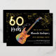 60 Rocks avec cette musique rock cool thème 60e anniversaire fête invitation moderne. Rocher et rouler guitare électrique colorée funky avec parties scintillant d'or et illustrations de notes musicales avec typographie de calligraphie moderne or personnalisée sur un arrière - plan noir. Ce modèle facile à utiliser crée l'invitation personnalisée parfaite pour célébrer soixante dans le style rockstar. Parfait si vous avez un groupe ou êtes guitariste, musicien et mélomane. instrument de musique psychédélique multicolore unique oeuvre originale de l'artiste Catherine Sweetman