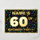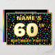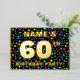 La façade de cette carte d'invitation joyeuse et captivante pour célébrer le soixantième anniversaire et fêtes comporte un nom modifiable, un grand numéro "60e", le message "FÊTE D'ANNIVERSAIRE !", et une frontière. L'arrière - plan du devant a un motif d'étoiles haut en couleurs et optimiste. Le verso présente des détails personnalisés sur l'événement, tels que la date, l'heure, le lieu/lieu et toute autre information pertinente. Des invitations personnalisées comme celles-ci pourraient être une façon amusante pour les participants/invités invitations à une fête d’anniversaire organisée pour célébrer le 60e anniversaire de quelqu’un. [~Z0000600]