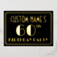 L'avant de cette invitation à fêter son 60ème anniversaire, de style vintage et des années 1920-1930, est décoré d'un nom personnalisé, d'un grand style art déco inspiré du numéro "60ème", du message "FÊTE D'ANNIVERSAIRE" et d'un motif frontalier composé de lignes. L'avant dispose également d'un arrière - plan de couleur noire par défaut, mais il peut être customisé à une couleur différente si désiré. Le verso présente des détails personnalisés sur l'événement, tels que la date, l'heure, le lieu et toute autre information qui peut être importante. Des invitations luxueuses, élégantes et personnalisables comme celles-ci peuvent être utilisées pour les invités invitations à une fête d’anniversaire organisée pour célébrer le 60e anniversaire de quelqu’un. [~Z0000591]