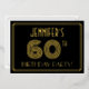 L'avant de cette invitation à fêter son soixantième anniversaire et à fêter des années 1920-1930 est ornée d'un nom personnalisé, d'un grand look art déco inspiré du numéro "60E", du message "FÊTE D'ANNIVERSAIRE !" et d'un motif frontalier composé de lignes. L'avant a également un arrière - plan de couleur noire par défaut, mais il peut être customisé à une couleur différente si désiré. Le verso présente des détails personnalisés sur l'événement, tels que la date, l'heure, l'emplacement et toute autre information pertinente. Des invitations élégantes, luxueuses et modifiables comme celles-ci pourraient être utilisées pour les invités invitations à une fête d’anniversaire qui se tient pour honorer le 60e anniversaire de quelqu’un. [~Z0000590]