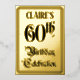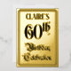 La façade de cette opulente et élégante feuille de fête/faire-part de fête/carte d'invitation présente le message "60th Birthday Celebration" dans un texte de style script luxueux. Il a également un nom modifiable. Le verso présente des détails personnalisés sur l'événement, tels que la date, l'heure, l'emplacement/le lieu et toute autre information pertinente. Des invitations élégantes, ornées et personnalisables comme celles-ci pourraient être utilisées pour les invités invitations à une fête d’anniversaire ou à une fête qui a lieu pour honorer le soixantième anniversaire de quelqu’un. [~Z0000596]