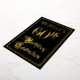 L'avant de ce design élégant, luxueux et feuilleté de célébration du soixantième anniversaire/invitation de fête comprend le message "60e anniversaire de célébration" dans un texte orné de style script. Il a également un nom personnalisé. Par défaut, l'arrière - plan de l'avant est coloré en noir (bien qu'il puisse être customisé à une couleur différente). Le verso présente des détails personnalisés sur l'événement, tels que la date, l'heure, l'emplacement et toute autre information pertinente. Des invitations personnalisées et ornées, fantaisistes, comme celles-ci, pourraient être utilisées pour des invités invitations à une fête d’anniversaire qui a lieu pour honorer le soixantième anniversaire de quelqu’un. [~Z0000589]