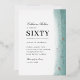 This stylish and elegant birthday party invitation features a seafoam green brush stroke texture and real foil splatter on top. Here shown for a 60th birthday party, but you can change the age to anything.