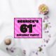 La façade de cette carte d'invitation de fête de soixante et unième anniversaire joyeuse et optimisée comporte un nom modifiable, un grand numéro "61e", le message "FÊTE D'ANNIVERSAIRE !", et une frontière. L'arrière - plan de l'avant présente un motif amusant rose foncé et rose clair rayures, aux formes cardiaques. Le verso présente des détails personnalisés sur l'événement, tels que la date, l'heure, le lieu/lieu et toute autre information qui peut être importante. Des invitations personnalisées comme celles-ci pourraient être une façon amusante pour les invités/participants invitations à une fête d’anniversaire organisée pour célébrer le 61e anniversaire de quelqu’un. [~Z0000603]