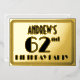 Invitation En Aluminium 62e fête d'anniversaire — Art Déco Look "62" + Nom