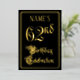 Le devant de cette luxueuse, élégante, feuille de soixante-deuxième anniversaire / conception d'invitation de célébration comprend le message "62e anniversaire Célébration" dans un texte orné de style script. Il comporte également un nom modifiable. Par défaut, l'arrière - plan de l'avant est coloré en noir (bien qu'il puisse être customisé à une couleur différente). Le verso présente des détails personnalisés sur l'événement, tels que la date, l'heure, l'emplacement et toute autre information pertinente. Des invitations ornées, fantaisistes et modifiables comme celles-ci pourraient être utilisées pour les invités invitations à une fête d’anniversaire ou à une fête qui a lieu pour célébrer le 62e anniversaire de quelqu’un. [~Z0000589]