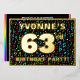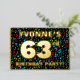 La façade de cette fascinante et vibrante carte d'invitation pour fêtes et fêtes de soixante-troisième anniversaire comporte un nom modifiable, un grand numéro "63e", le message "FÊTE D'ANNIVERSAIRE!", et une frontière. L'arrière - plan du front a un motif coloré et captivant de symboles musicaux. Le verso présente des détails personnalisés sur l'événement, tels que la date, l'heure, le lieu et toute autre information importante. Des invitations personnalisées comme celles-ci pourraient être une façon amusante pour les invités invitations à une fête d’anniversaire qui se tient pour honorer le 63e anniversaire de quelqu’un. Il peut s'agir d'une soirée d'anniversaire sur le thème de la musique. [~Z0000601]