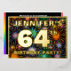 La façade de cette carte d'invitation de fête de soixante-quatrième anniversaire et de fête de fête présente un nom personnalisé, un grand numéro "64e", le message "FÊTE D'ANNIVERSAIRE !" et une frontière. L'arrière - plan du front a un motif optimiste et coloré qui éclate et qui s'inspire du feu d'artifice. Le verso présente des détails personnalisés sur l'événement, tels que la date, l'heure, le lieu et toute autre information importante. Des invitations personnalisables comme celles-ci pourraient être une façon amusante pour les participants/invités invitations à une fête d’anniversaire ou à une réunion organisée pour honorer le 64e anniversaire de quelqu’un. [~Z0000602]