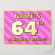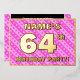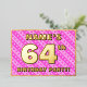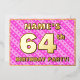 La façade de cette joyeuse carte d'invitation pour fêtes et célébrations de soixante-quatrième anniversaire comporte un nom personnalisable, un grand numéro "64e", le message "FÊTE D'ANNIVERSAIRE !", et une frontière. L'arrière - plan de l'avant a un motif amusant avec des rayures rose foncé et rose clair et des formes cardiaques. Le verso présente des détails personnalisés sur l'événement, tels que la date, l'heure, le lieu et toute autre information importante. Des invitations customisées comme celles-ci pourraient être une façon amusante pour les participants invitations/invités à une réunion d’anniversaire qui se tient pour honorer le 64e anniversaire de quelqu’un. [~Z0000603]