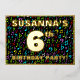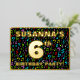 La façade de cette amusante et passionnante carte d'invitation de célébration de sixième anniversaire comprend un nom personnalisé, un grand numéro "6e", le message "FÊTE D'ANNIVERSAIRE !", et une frontière. L'arrière - plan de l'avant est doté d'un motif de notes et de symboles musicaux multicolores qui attire l'attention. Le verso présente des détails personnalisés sur l'événement, tels que la date, l'heure, le lieu et toute autre information qui peut être utile. Des invitations customisées comme celles-ci pourraient être une façon amusante pour les participants invitations à une fête d’anniversaire ou à une réunion organisée pour célébrer le 6e anniversaire de quelqu’un. [~Z0000601]