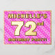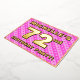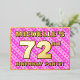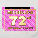 La façade de cette carte d'invitation joyeuse et optimisée de soixante-douzième anniversaire/fête comporte un nom personnalisable, un grand numéro "72e", le message "FÊTE D'ANNIVERSAIRE !", et une frontière. L'arrière - plan de l'avant a un motif aimante rose foncé et rose clair rayures, avec des formes de coeur. Le verso présente des détails personnalisés sur l'événement, tels que la date, l'heure, l'emplacement/le lieu et toute autre information pertinente. Des invitations customisées comme celles-ci pourraient être une façon amusante pour les invités/participants invitations à une fête d’anniversaire organisée pour honorer le 72e anniversaire de quelqu’un. [~Z0000603]